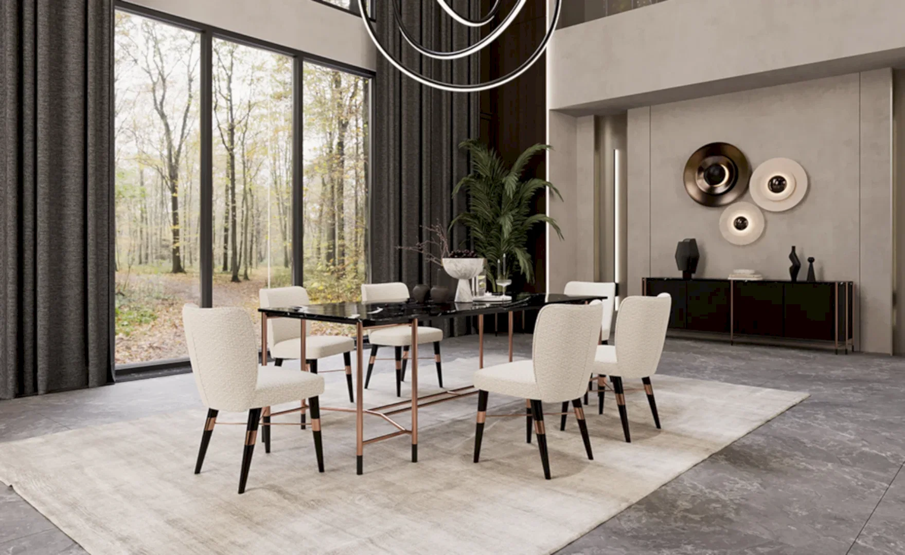 Rose metal rengin siyahın asil enerjisine sahip olduğu Dali Yemek Masası, modern ve oryantalist dokularla güçlü bir armoni unsurları. Tasarımda tercih edilen ayaklar, kreatif bir bakış açısı kazandırırken, çağdaş yaşam biçimlerine uyum sağlıyor.